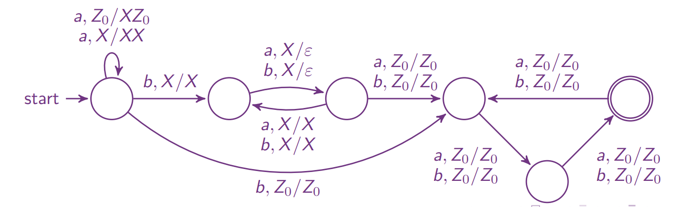 - 是一个栈符号 的输出是一个由 组成的有限集,其中 是新的状态, 是用于改变栈顶符号的栈符号串