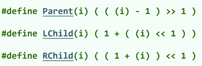 逻辑上等同于完全二叉树,物理上用向量实现。 堆序性:处处满足 H[i] <= H[Parent(i)]根节点为最大值