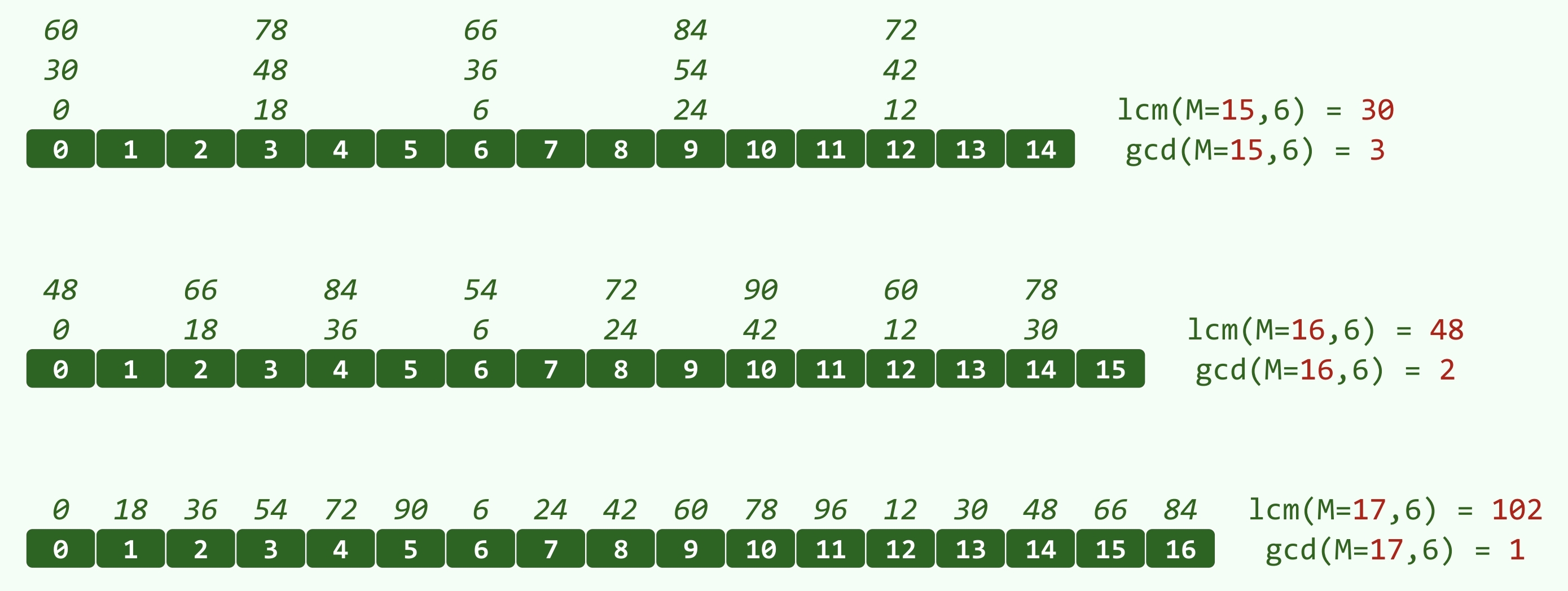 - 若表长为合数,可能出现可使用的桶数小于 ,此时,若这些桶均非空,则会死循环