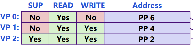 SUP 位表示进程是否在超级用户模式下才能访问,READ 位和 WRITE 位控制对页面的读写访问。