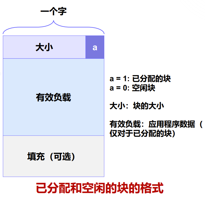 可以给块增加一个双字对齐的条件,块的大小总是 8 的倍数,则块大小的低 3 位总是 0,可以用来编码状态信息。