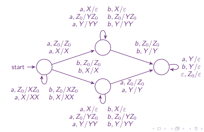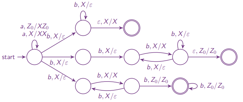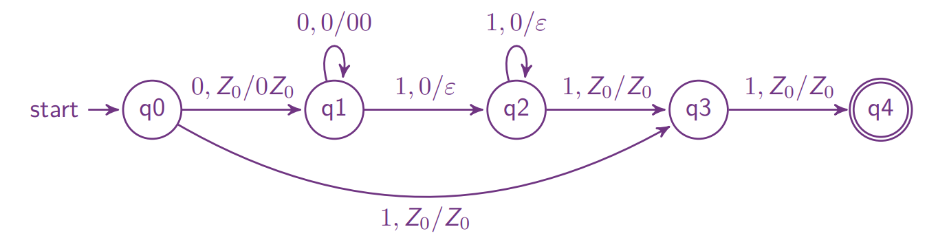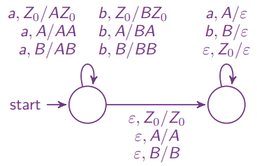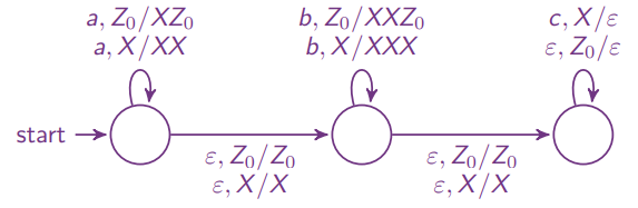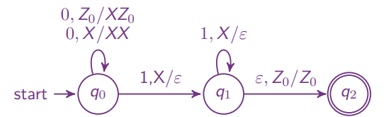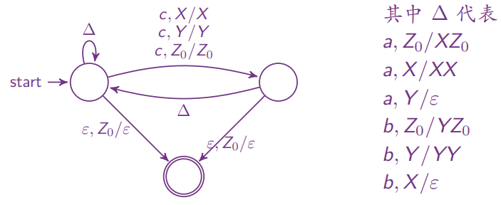 - 是一个栈符号 的输出是一个由 组成的有限集,其中 是新的状态, 是用于改变栈顶符号的栈符号串